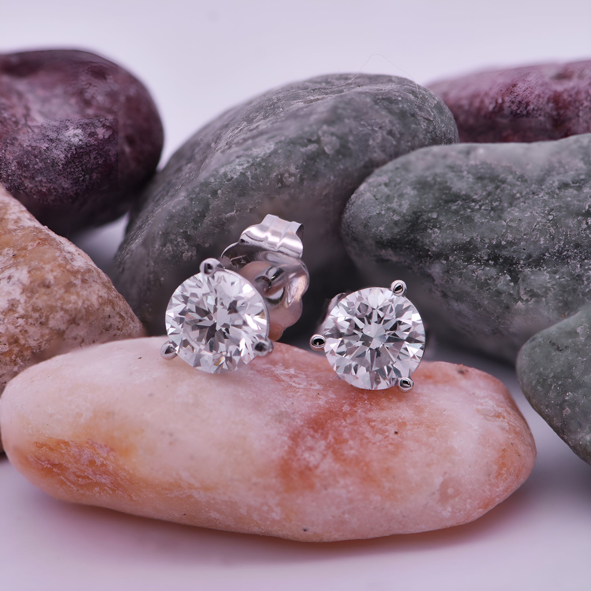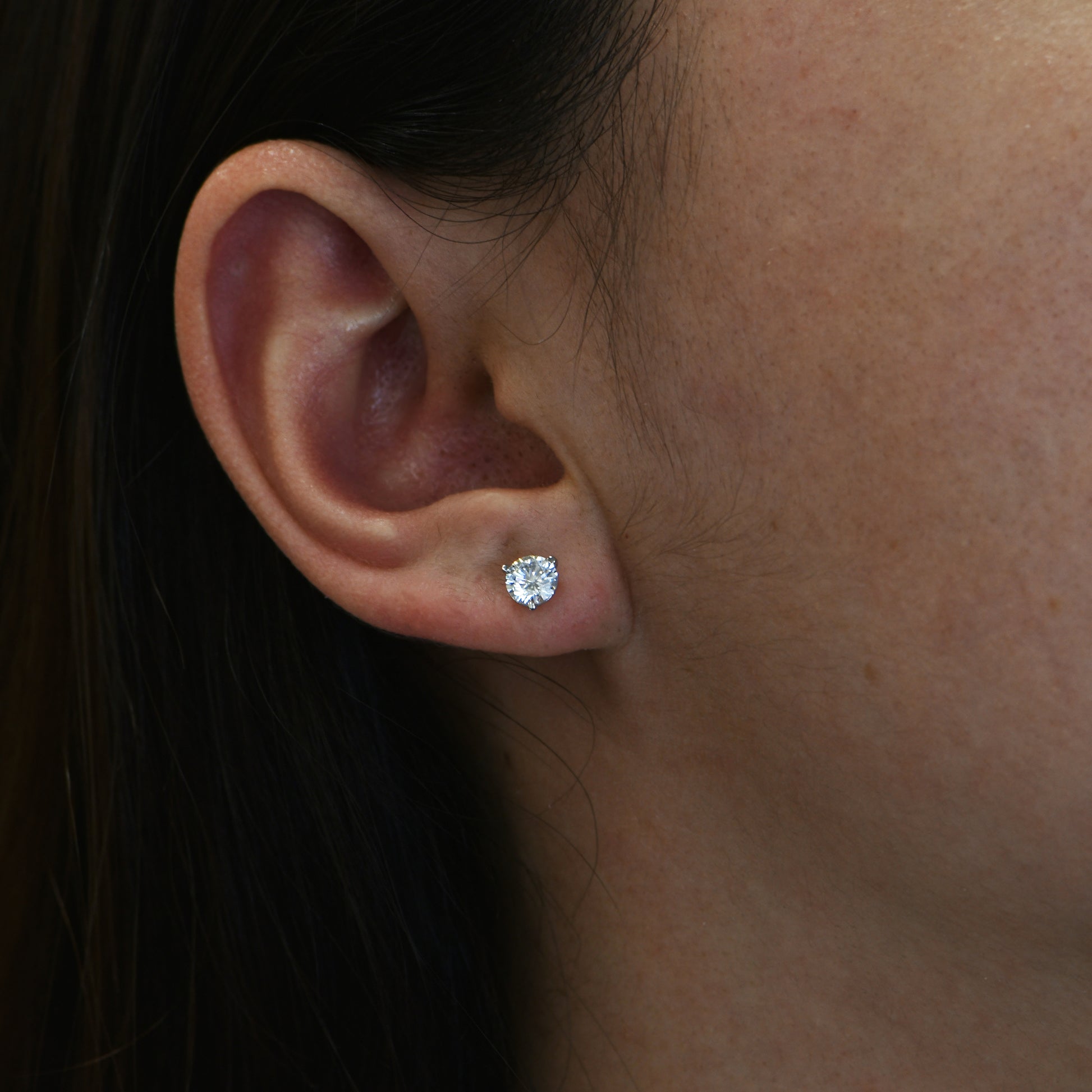 14k Gold 1 Ct 3 Prong Lab Grown Diamond Stud Earrings
